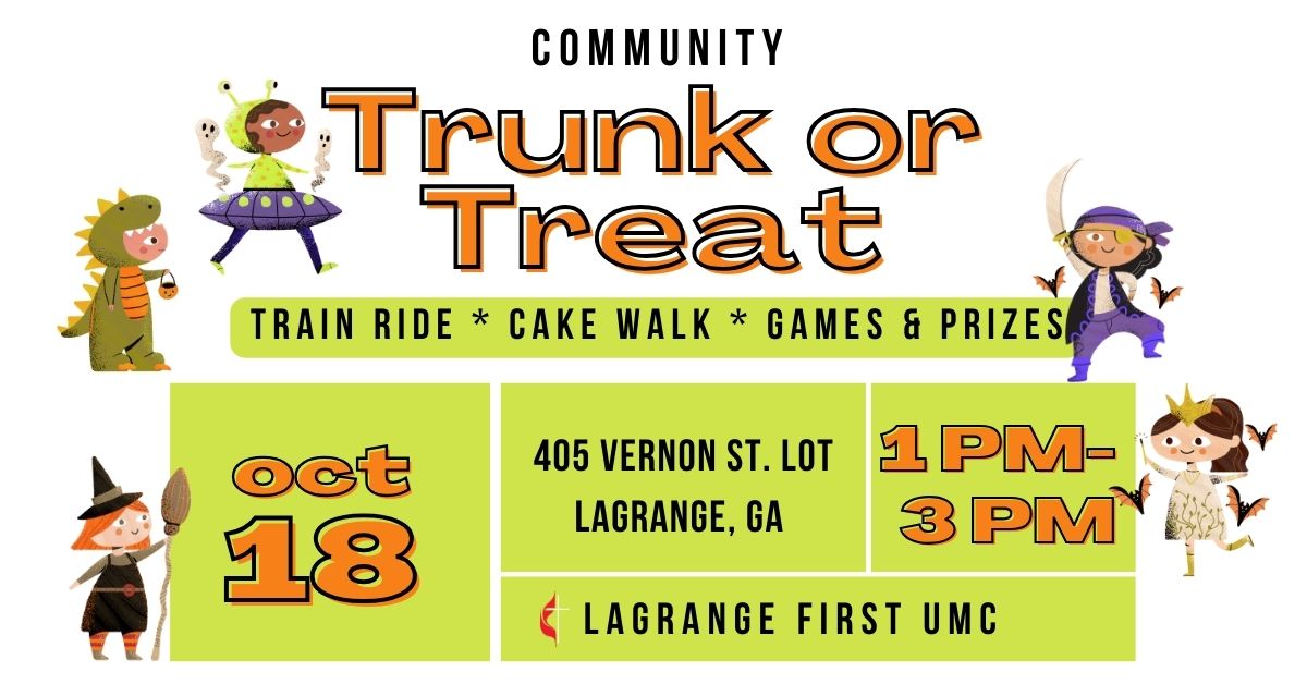 Looking for a fun, safe, and joy-filled way to celebrate fall with your family? Join us for Trunk or Treat at First United Methodist Church in LaGrange. This free community event is packed with candy, games, surprises, and memory-making moments for kids of all ages.