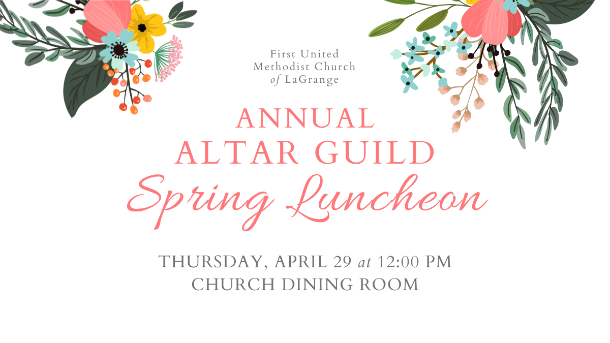 You’re invited to join us for a springtime luncheon honoring the women and men who faithfully prepare our sanctuary for worship week after week—our beautiful Altar Guild. Whether you’re a longtime member or simply curious about what this essential ministry looks like, we’d love for you (and your friends) to join us.