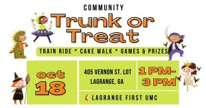 Looking for a fun, safe, and joy-filled way to celebrate fall with your family? Join us for Trunk or Treat at First United Methodist Church in LaGrange. This free community